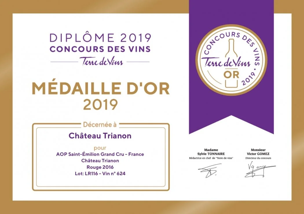 Concours des Vins de Terre de Vins 2019 17 mai Écrit par valentine chain Médaille d'Or pour Château Trianon 2016 au Concours des Vins de Terre de Vins 2019. valentine chain https://agence-leone.com